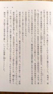 という表現とか。多くの読者は実際に見たことが無いであろう拘置所の廊下の「広さ」であるとか、死刑が執行された「一九〇番、石田」と物語の中心人物「樹原」の距離感、近さであるとかが、この”九歩”という数字で、一気にわかり易くなっている気がする、というようなところとか。こういう「目に見えるような」文章、「わかり易く読み易く」な感じ、結構好きです。